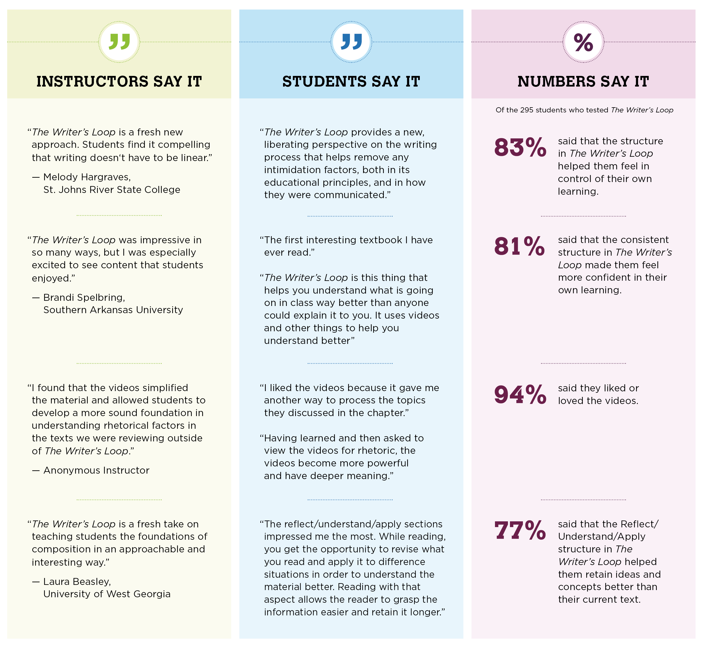 "I really like how this text focuses on process and concrete tools students can use not only in my classes, but in other classes, and other real-world writing situations."