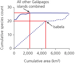 harbors fewer native land-bird species than all the other Galápagos Islands combined, despite the fact that Isabela is larger than the cumulative area of the other islands.