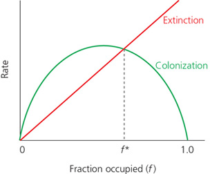 colonization is greater than the rate of extinction when the fraction of patches occupied is above f*.
