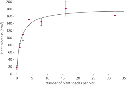 increases as the diversity of plant species increases from very low numbers—but only to a point, after which productivity remains more or less constant.