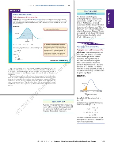 LESSON 2.6 • Normal Distributions: Finding Values from Areas 143