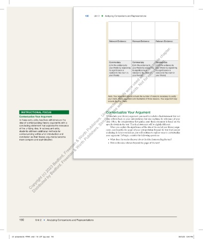 190 Unit 2 ■ Analyzing Comparisons and Representations