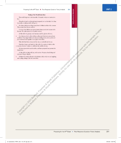 200 Unit 2 ■ Analyzing Comparisons and Representations Preparing for the AP Exam ■ Free-Response Question: Poetry Analysis 201 UNIT 2