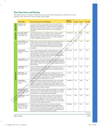 Author/Title Summary: Features and Challenges Difficulty Length Lexile Pacing*