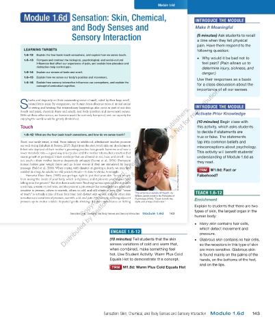 Sensation: Skin, Chemical, and Body Senses and Sensory Interaction Module 1.6d 143