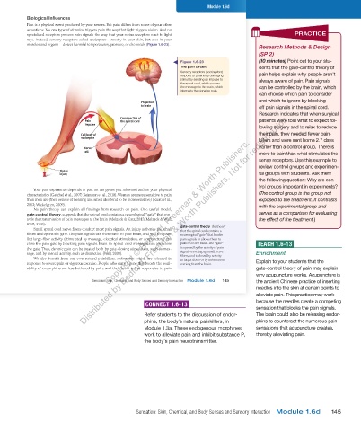 close the pain gate by blocking pain signals. Brain-to-spinal-cord messages can also close pass on to the brain. The “gate” TEACH 1.6-13