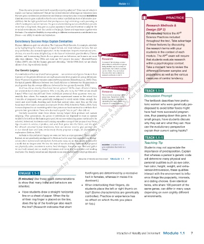 Instead, we are genetically predisposed to think and act in ways that promoted our biologi- TEACH 1.1-1