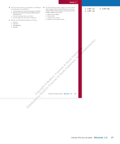 3. If Drew’s motor neurons were impaired, he would experi- 5. Dr. Veloso wants to conduct a study on how the central