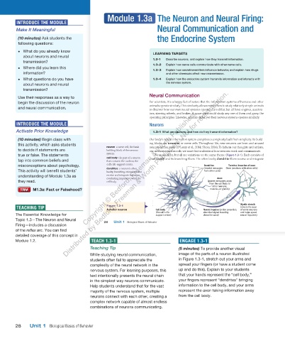 TEACHING TIP Figure 1.3-1 Cell body Neural impulse (action potential; (covers the axon
