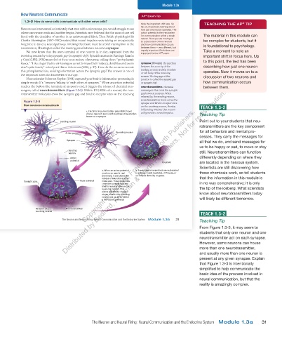 The Neuron and Neural Firing: Neural Communication and the Endocrine System Module 1.3a 31 Teaching Tip
