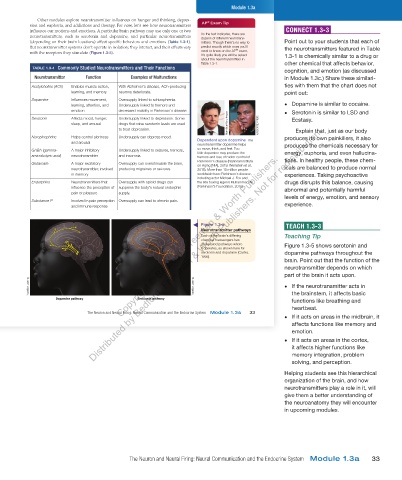 (depending on their brain locations) affect specific behaviors and emotions (Table 1.3-1). mitters. Though there’s no way to Point out to your students that each of