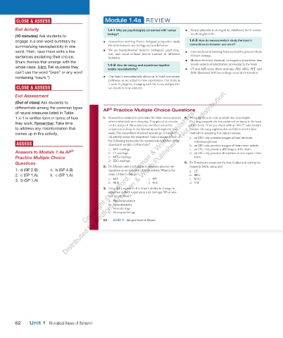 Answers to Module 1.4a AP ® a. MRI readings c. an EEG only provides still images of the brain.