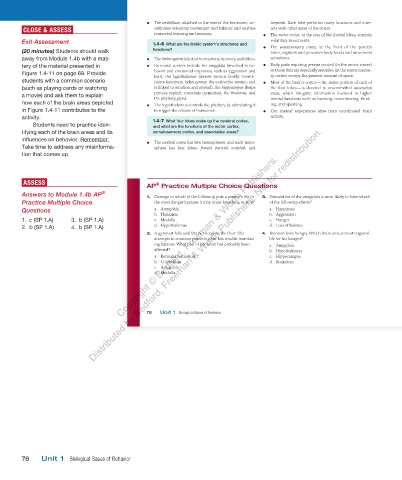 Answers to Module 1.4b AP ® 1. Damage to which of the following puts a person’s life in 3. Stimulation of the amygdala is most likely to have which