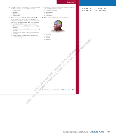 6. After being late to work for the fifth time, Hester de- 8. Which lobe of the brain is the arrow pointing to?