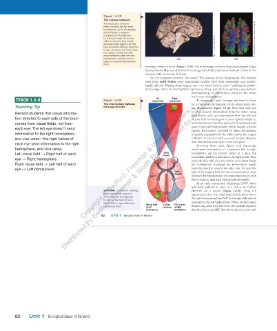 Right visual field Left half of each Copyright © Bedford, Freeman & Worth Publishers. the hemisphere receiving the information would