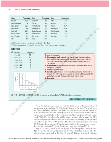 (b) (13 + 20)/50 = 33/50 = 0.66 of states have less than 10% foreign-born residents.