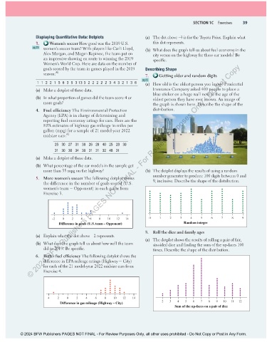Displaying Quantitative Data: Dotplots (a) The dot above −3 is for the Toyota Prius. Explain what