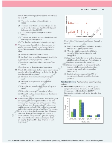 (C) Stemplots are better for displaying very large sets 46. Marital Status (1B) The side-by-side bar graph