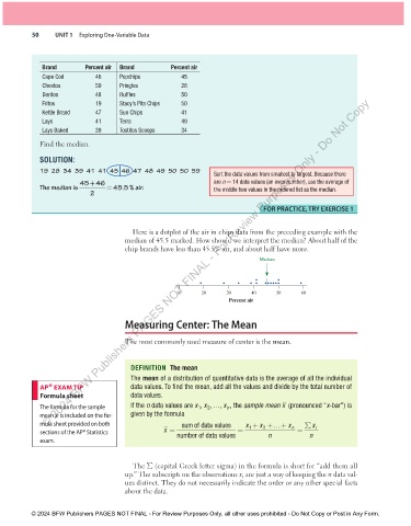 AP® EXAM TIP data values. To find the mean, add all the values and divide by the total number of