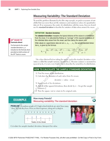 AP® EXAM TIP the individual data values from the mean, and then taking the square root.