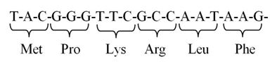 Refer to the figure of a portion of a DNA molecule and its encoded amino acid sequence.