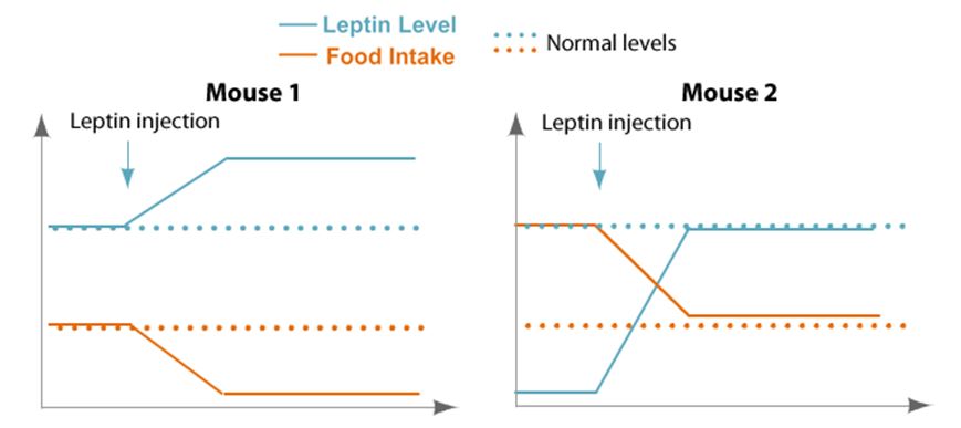 You inject a mouse of unknown genotype with leptin and obtain data shown in the graph below.