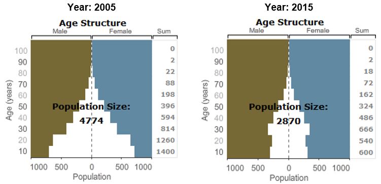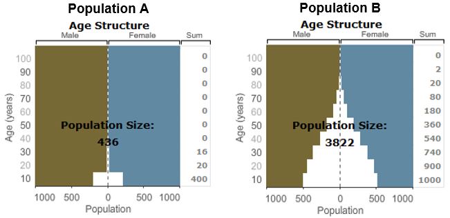 Study the two age structures below. They both represent the same population at different times in the population’s history.